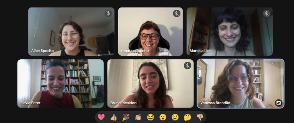 No primeiro encontro de leitura de 2026, a autora Flávia Pèret esteve com o grupo de leitoras e pesquisadoras para conversar sobre seu livro “Coisas presentes demais” (Editora Relicário, 2025). A obra, que registra de modo sensível como a autora se aproxima da avó diante de seu diagnóstico de Alzheimer, faz da escrita um espaço não apenas de reconstituição da memória, mas também do aparecimento da avó diante da neta, e da neta escritora diante da avó. A conversa foi cercada de reflexões pessoais das participantes, sobre luto, memória e esquecimento, a complexidade das relações familiares e o encontro consigo mesma diante da “outra necessária” (Adriana Cavarero, 2025), para quem narrar significa aparecer e (se) ver no mundo não a partir de si mesma, mas a partir da outra simplesmente presente diante de nós.